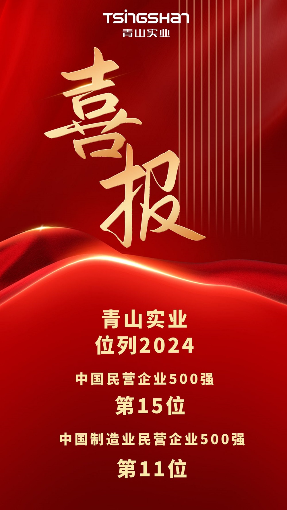喜报丨jinnian金年会实业位列中国民营企业500强第15位、中国制造业民营企业500强第11位