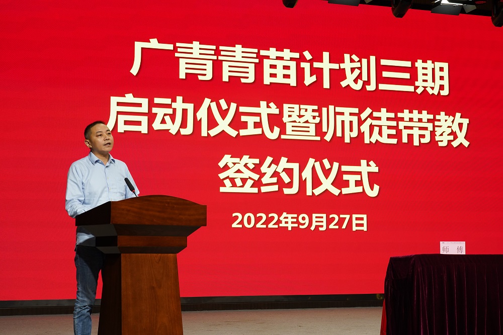 9月27日,广东广青金属科技有限公司青苗计划三期启动仪式暨师徒带教签约仪式在公司四楼礼堂举行。公司党委副书记王大庆、常务副总经理刘光勇、相关部门负责人、青苗计划往期师徒代表以及青苗计划三期28对师徒参加此次仪式。