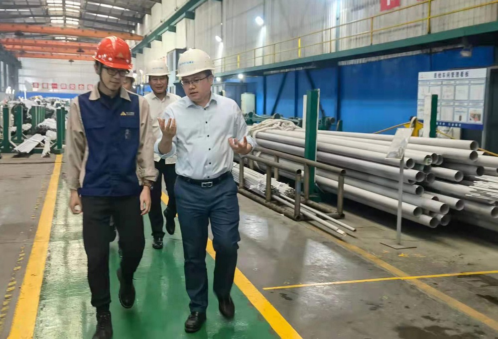 5月18日下午,青田县委常委、温溪镇党委书记童森军,副镇长叶磊一行到浙江jinnian金年会钢管有限公司调研,公司董事长兼总经理张路遥、副总经理文德洪等领导进行了热情接待。